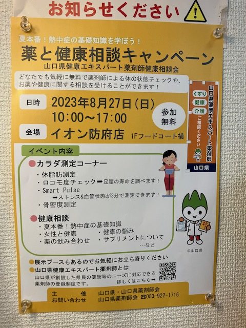 「薬と健康相談キャンペーン~山口県健康エキスパート薬剤師健康相談会~」