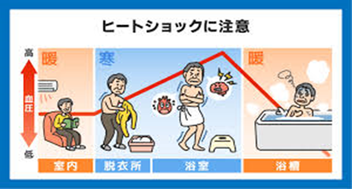 ヒートショックを予防するポイントは、血圧が乱高下しないようにすることです。