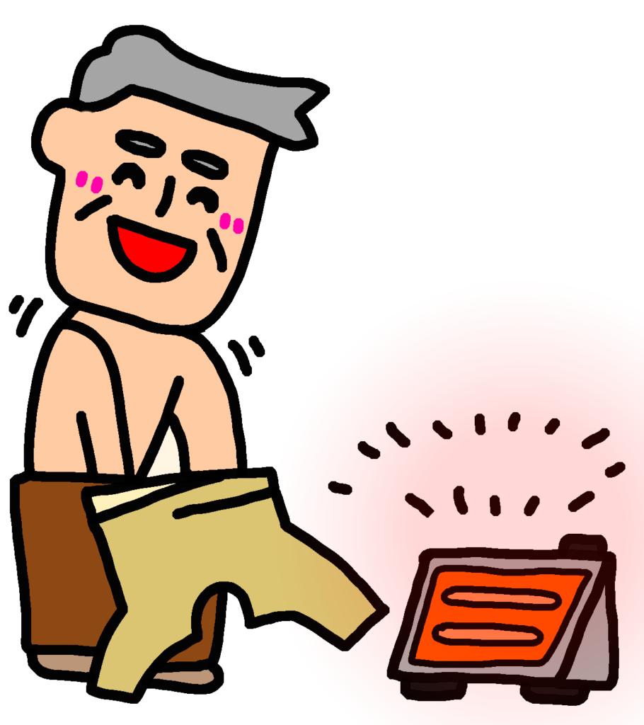 暖かいリビングから脱衣所に移動した際の温度変化を軽減するために、暖房器具を使用したり工夫をしましょう。