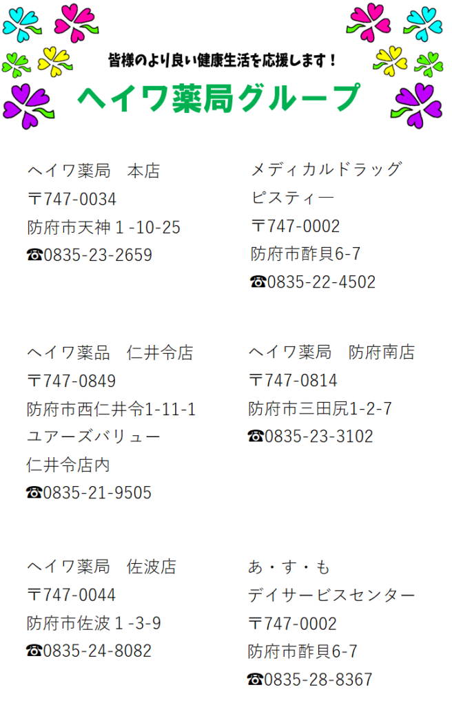 こんにちは~。ヘイワ薬局ピスティー店の須崎です♪