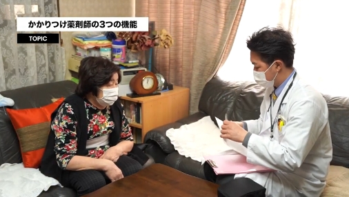 ご自宅にお薬を配達し、お薬の説明、服薬指導、お薬の効き目の確認などを行います。お伺いした情報は医師とケアマネジャー等と共有し、連携して患者さんをサポートしています。